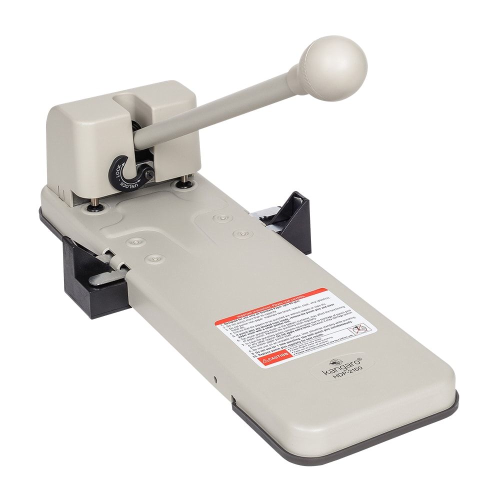 Супермощный дырокол Kangaro HDP-2150, пробивает стопу 150 листов. Длинный рычаг уменьшает силу нажима, необходимую для перфорирования. Точный ограничитель формата. Доступны запасные ножи артикул веб. 028025.
