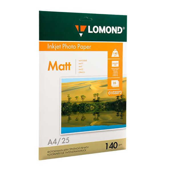 Фотобумага матовая для струйной фотопечати "Lomond", А4, 25 листов, 140 г/м2