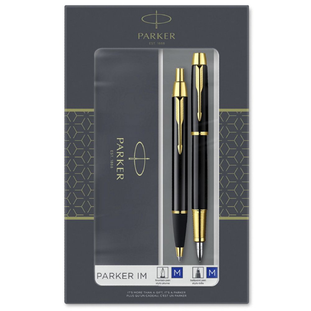 Набор "Parker IM Black GT" включает шариковую и перьевую ручку Parker IM Black GT, выполненные в корпусе из ювелирной латуни и покрытые глянцевым черным лаком. Отделка элементов корпуса - латунь с позолотой. Ручки укомплектованы стержнем (М) с синей пастой. Набор поставляется в подарочной упаковке. Элегантные и статусные ручки Parker могут выступать в качестве достойного корпоративного подарка.